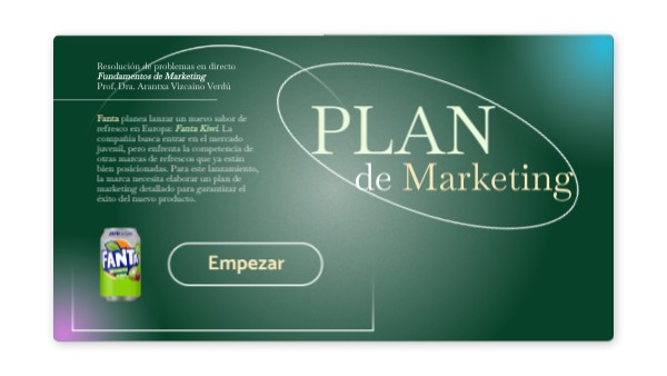 Fanta planea lanzar un nuevo sabor de refresco en Europa: Fanta Kiwi. La compañía busca entrar en el mercado juvenil, pero enfrenta la competencia de otras marcas de refrescos que ya están bien posicionadas. Para este lanzamiento, la marca necesita elaborar un plan de marketing detallado para garantizar el éxito del nuevo producto.