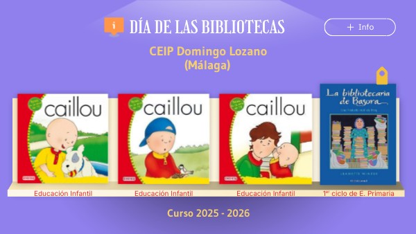 Presentación con enlaces a vídeos para conmemorar el Día de las Bibliotecas en E. Infantil y Primer Ciclo de E. Primaria. CEIP Domingo Lozano (Málaga)