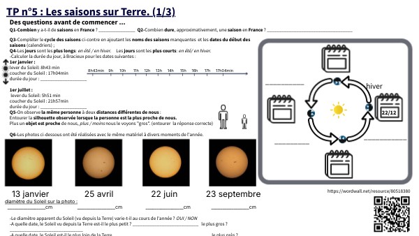 TP n°5 : Les saisons sur Terre. (2/3)