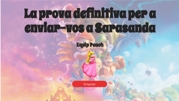 Benvingut, equip Toad! Com ja sabeu, Sarasanda està en perill degut a que Wario i Waluigi volen transmetre hàbits perjudicials a la població. Nosaltres hem de convertir-nos en els superherois i superheroïnes que salven aquest univers. Però hem de demostrar que estem preparats/es per a això, i ho farem per mitjà de aquesta prova.