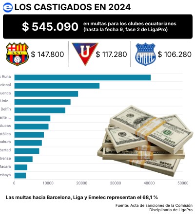 en multas para los clubes ecuatorianos (hasta la fecha 9, fase 2 de LigaPro)