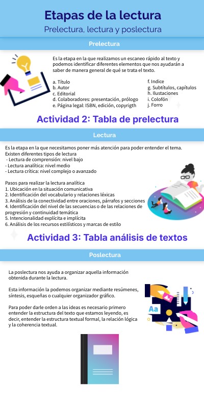La poslectura nos ayuda a organizar aquella información obtenida durante la lectura. Esta información la podemos organizar mediante resúmenes, síntesis, esqueñas o cualquier organizador gráfico. Para poder darle orden a las ideas es necesario primero entender la estructura del texto que estamos leyendo, es decir, entender la estructura textual formal, la relación lógica y la coherencia textual.
