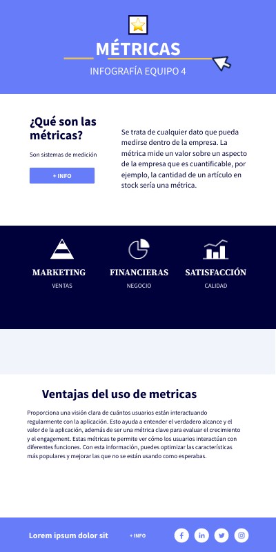 Fuentes López AlanEn conclusion, las metricas son muy importantes para el rendimiento de una empresa, pues por un lado estan las metricas financieras que ayudan a una empresa a medir el rendimiento y la estabilidad de la empresa, y tenemos la de percepcion con las uales podemos identificar el nivel de satisfaccion y experiencia que tiene con la empresa. Esto nos puede ayudar a llamar la atencion de mas clientes y asi maximizar las ventas para ser una emrpresa mas rentable.