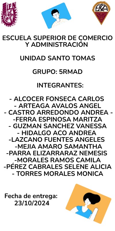 ESCUELA SUPERIOR DE COMERCIO Y ADMINISTRACIÓN UNIDAD SANTO TOMAS GRUPO: 5RMAD Integrantes: - Alcocer Fonseca Carlos - Arteaga Avalos Angel - Castro Arredondo Andrea - -Ferra Espinosa Maritza - Guzman Sanchez Vanessa - Hidalgo Aco Andrea -Lazcano Fuentes Angeles -Mejia Amaro Samantha -Parra Elizarraraz Nemesis -Morales Ramos Camila -Pérez Cabrales Selene Alicia - Torres Morales Monica