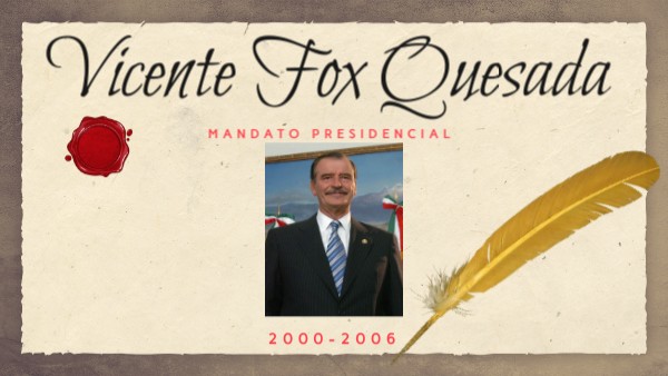 Vicente Fox Quesada, candidato del Partido Acción Nacional (PAN), llegó a la presidencia de México en el año 2000 tras ganar las elecciones de julio de ese año. Su victoria marcó el fin de 71 años de dominio del Partido Revolucionario Institucional (PRI).