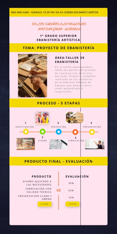 En la salida observaremos todas las partes del proceso de construcción de la nao San Juan. Proyecto completo realizado en los astilleros de la empresa Albaola de Pasajes que deberá servir como aprendizaje e inspiración.