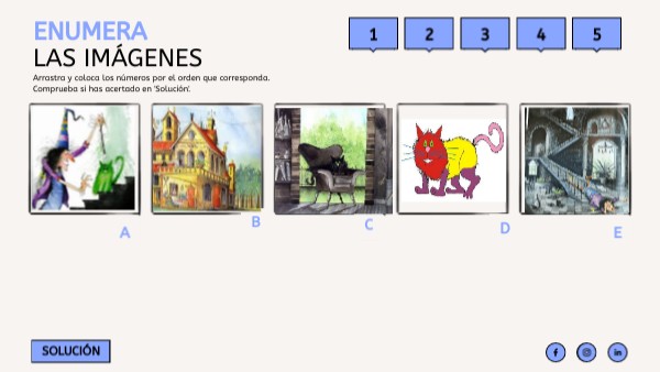 Arrastra y coloca los números por el orden que corresponda. Comprueba si has acertado en 'Solución'.