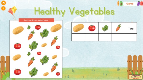 VEGETABLES| L1U5L1 | COUNT & FILL THE VEGETABLES