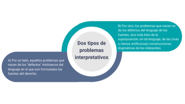 A) Por un lado, aquellos problemas que nacen de los "defectos" intrínsecos del lenguaje en el que son formuladas las fuentes del derecho.