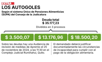 Sobre las deudas hay una Audiencia de revisión de medidas de Apremio el 25 de noviembre de 2024, a las 11:30 en el Complejo Judicial Rumiñahui, Quito.