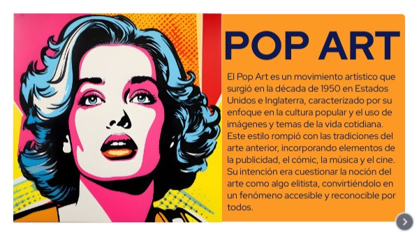 El Pop Art es un movimiento artístico que surgió en la década de 1950 en Estados Unidos e Inglaterra, caracterizado por su enfoque en la cultura popular y el uso de imágenes y temas de la vida cotidiana. Este estilo rompió con las tradiciones del arte anterior, incorporando elementos de la publicidad, el cómic, la música y el cine. Su intención era cuestionar la noción del arte como algo elitista, convirtiéndolo en un fenómeno accesible y reconocible por todos.