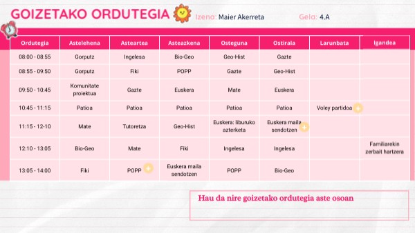 Hau da nire arratsaldeetako ordutegia aste osoan