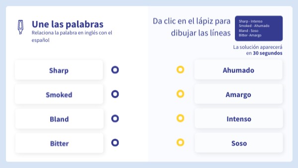 Une las palabras que sirven para expresar Sabores en Inglés