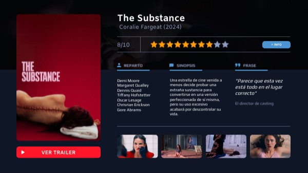Una estrella de cine venida a menos decide probar una extraña sustancia para convertirse en una versión perfeccionada de sí misma, pero su uso excesivo acabará por descontrolar su vida.