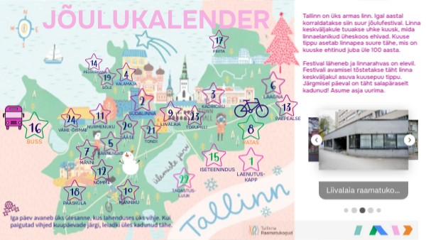 Tallinn on üks armas linn. Igal aastal korraldatakse siin suur jõulufestival. Linna keskväljakule tuuakse uhke kuusk, mida linnaelanikud üheskoos ehivad. Kuuse tippu asetab linnapea suure tähe, mis on kuuske ehtinud juba üle 100 aasta.