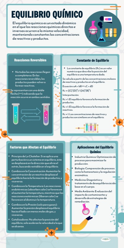 - Cambios en la Concentración: Aumentar la concentración de un reactivo desplaza el equilibrio hacia la formación de productos, y viceversa.