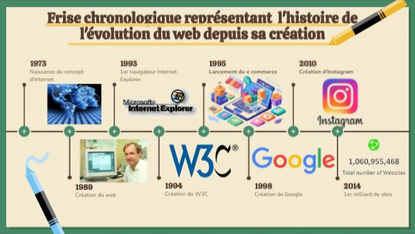 Frise chronologique représentant l'histoire de l'évolution du web depuis sa création