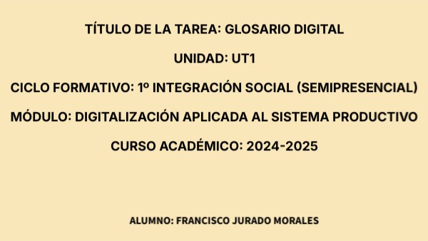 TÍTULO DE LA TAREA: GLOSARIO DIGITAL UNIDAD: UT1 CICLO FORMATIVO: 1º INTEGRACIÓN SOCIAL (SEMIPRESENCIAL) MÓDULO: DIGITALIZACIÓN APLICADA AL SISTEMA PRODUCTIVO CURSO ACADÉMICO: 2024-2025