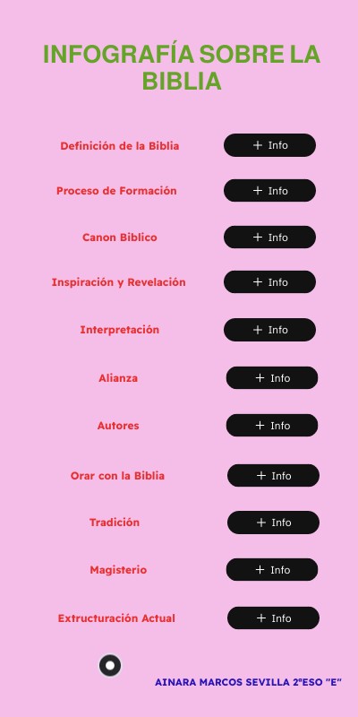 *Antiguo Testamento: Esta sección contiene 39 libros y se divide en varias categorías: Libros de la Ley (o Pentateuco): Génesis, Éxodo, Levítico, Números y Deuteronomio. Libros Históricos: Josué, Jueces, Rut, 1 y 2 Samuel, 1 y 2 Reyes, 1 y 2 Crónicas, Esdras, Nehemías y Ester. Libros Poéticos y de Sabiduría: Job, Salmos, Proverbios, Eclesiastés y Cantar de los Cantares. Libros Proféticos: Isaías, Jeremías, Lamentaciones, Ezequiel, Daniel. 12 profetas menores (Oseas a Malaquías). *Nuevo Testamento: Esta sección contiene 27 libros y también se divide en varias categorías: Evangelios: Mateo, Marcos, Lucas y Juan. Hechos de los Apóstoles: Un libro que narra la historia de la iglesia primitiva. Cartas Paulinas: Cartas escritas por el apóstol Pablo, como Romanos, 1 y 2 Corintios, Gálatas, Efesios, Filipenses, Colosenses, 1 y 2 Tesalonicenses, y las cartas a Timoteo, Tito y Filemón. Cartas Generales: Escritas por otros apóstoles, como Hebreos, Santiago, 1 y 2 Pedro, 1, 2 y 3 Juan, y Judas. Profético: Apocalipsis. Libro que cierra el Nuevo Testamento.