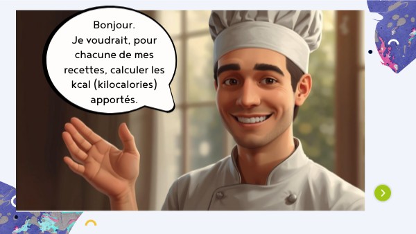 Bonjour. Je voudrait, pour chacune de mes recettes, calculer les kcal (kilocalories) apportés.