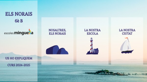 Hola! Nosaltres som 6è B i el nostre nom de grup és Norais. Per si no ho sabeu, un norai és un element de ferro que es troba en un port i en el qual s’aferren els vaixells amb una corda per no moure’s de lloc. També tenim un lema: “Forts i resistents lligats a un vaixell ple d’il·lusions i emocions, els Norais no deixem mai ningú penjat!” A la nostra classe som 24 alumnes, 12 nens i 12 nenes. Som com una petita família i dins d’aquesta està la nostra mestra, que té molta paciència i és molt simpàtica. Té vint-i-nou anys i es diu Marta. Nosaltres som un grup que ens estimem molt, ens fem riure, ens respectem, encara que som una mica desordenats… Però el més important és que cadascú complementa a la seva manera el grup classe. El que més ens agrada de nosaltres és que som un grup molt unit, i encara que a vegades hi hagi discussions, SEMPRE estem un al costat de l’altre i acabem el dia amb un somriure a la cara. Tenim molta empatia i som un grup molt considerat, i mai, mai deixem a ningú exclòs del grup com diu el nostre lema.