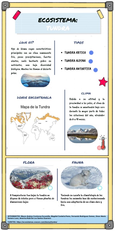 INTEGRANTES: Mauro Andres Contreras Escamilla, Magdiel Cardeña Perez, Fernando Rodriguez Gomez, Omar Alexis Romero Leon, America Rubi De Los Santos GuerreroFUENTES: https://ecosistemas.ovacen.com/bioma/tundra/
