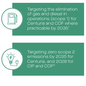 Targeting zero scope 2 emissions by 2035 for Centuria, and 2028 for CIP and COF2