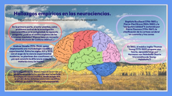 En la segunda parte, Blanco hace un recorrido en detalle por los distintos aportes que ha hecho la investigación neurocientífica, desde el siglo XIX, al estudio de los sistemas sensoriales (auditivo, olfativo, gustativo, visual y somatosensorial).