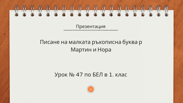 Урок № 47. Писане на малката ръкописна буква р. Мартин и Нора