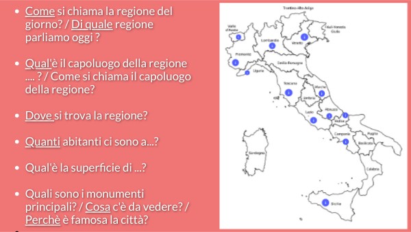- Qual'è il capoluogo della regione .... ? / Come si chiama il capoluogo della regione?