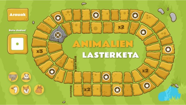 - Talde bakoitzak animalia aukeratuko du. Ondoren dadoa botako du. Zenbaki handiena lortzen duen taldea hasiko da.