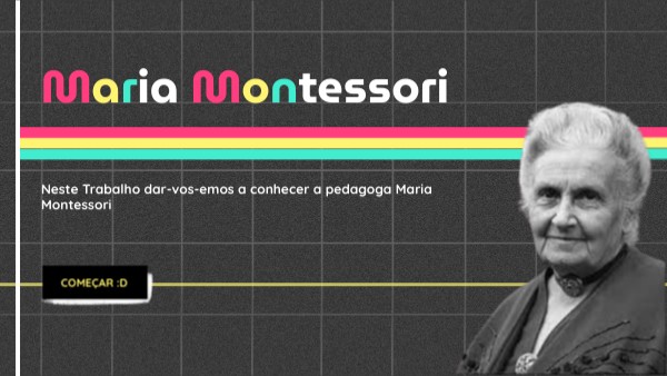 Neste Trabalho dar-vos-emos a conhecer a pedagoga Maria Montessori