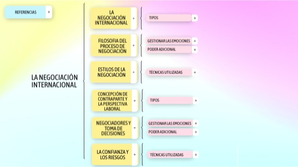 García, P. (2020). La importancia de la confianza en las negociaciones internacionales. Negociación Global. Recuperado de https://www.negociacionglobal.com/importancia-confianzaMartínez, L. (2021). Estilos de negociación y su impacto en los negocios internacionales. Business Today. Recuperado de https://businesstoday.com/negociacion-estilos Pérez, R. (2019). Filosofía del proceso de negociación: Teorías y enfoques. Revista de Negocios Internacionales. Recuperado de https://revistanegociosinternacionales.com/filosofia-proceso López, J. (2022). Riesgos y desafíos en la negociación intercultural. Global Management. Recuperado de https://globalmanagement.com/riesgos-desafios Ruiz, M. (2023). La perspectiva temporal en negociaciones internacionales. Economía Global. Recuperado de https://economiaglobal.com/perspectiva-temporal Hernández, S. (2020). Diferencias culturales en los estilos de negociación. Negocios Internacionales Hoy. Recuperado de https://negociosinternacionales.com/culturales-estilos Rivera, A. (2021). Factores de éxito en la toma de decisiones en negociaciones internacionales. Estrategia Global. Recuperado de https://estrategiaglobal.com/toma-decisiones Díaz, F. (2023). Confianza como herramienta en la negociación internacional. Negociación y Empresa. Recuperado de https://negociacionyempresa.com/confianza-herramienta Jiménez, T. (2022). Estilos de negociación y su adaptación intercultural. Perspectivas Empresariales. Recuperado de https://perspectivasempresariales.com/estilos-adaptacion Suárez, C. (2021). Evaluación de riesgos en la negociación internacional. Comercio Exterior Hoy. Recuperado de https://comercioexteriorhoy.com/evaluacion-riesgos