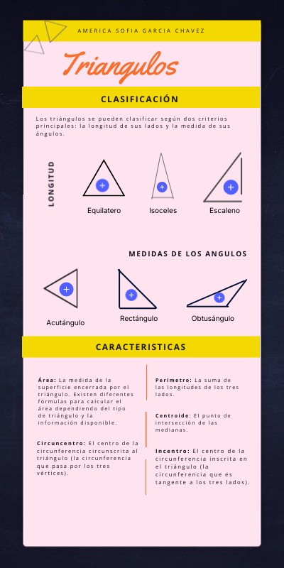 Perímetro: La suma de las longitudes de los tres lados. Centroide: El punto de intersección de las medianas.