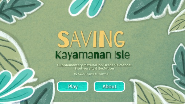 "Saving Kayamanan Isle" is an educational game for Grade 9 students, designed to enhance their understanding of biodiversity, environmental changes, species extinction, and conservation within Philippine ecosystems. The game’s objective is to restore biodiversity and balance in the fictional Kayamanan Isle, rewarding players for protecting species, restoring habitats, and implementing sustainable practices. Though the island is fictional, all featured species—such as the Philippine Eagle—are real, with educational pop-ups sharing details on scientific names, characteristics, and conservation status. The storyline reflects real ecological challenges in the Philippines, encouraging students to explore ways they can support biodiversity awareness and restoration.