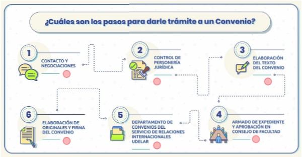 Luego de la aprobación del convenio por el Consejo de Facultad de Psicología, el expediente se envía al Departamento de Convenios del Servicio de Relaciones Internacionales de la Udelar. En dicho Servicio, se realiza un último control de requisitos formales e informe técnico. Dicho informe puede ser aprobado en su totalidad, aprobado con sugerencias y observaciones a subsanar por parte del/la Decano/a, o puede ocurrir una devolución del expediente sin aprobación.Los Convenios Internacionales además se dirigen a la Comisión de Relaciones Internacionales y Cooperación Regional e Internacional (CRI y CRI), la cual asesora al Consejo Ejecutivo Delegado para su aprobación total u observada. Luego de realizado el informe, el expediente pasa a la Secretaría General de la Udelar para integrar el orden del día del Consejo Ejecutivo Delegado Académico. Si es aprobado allí, se devuelve el expediente para concretar la firma.