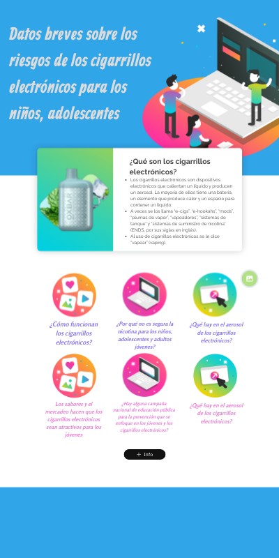 - Los cigarrillos electrónicos contiene nicotina, saborizantes y otras sustancias.