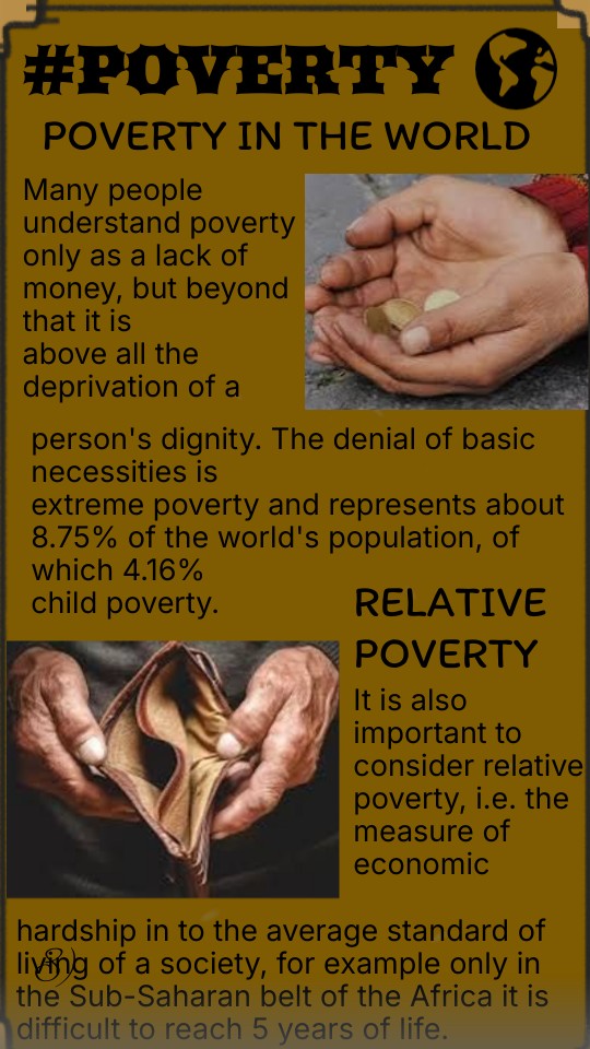 person's dignity. The denial of basic necessities is extreme poverty and represents about 8.75% of the world's population, of which 4.16% child poverty.