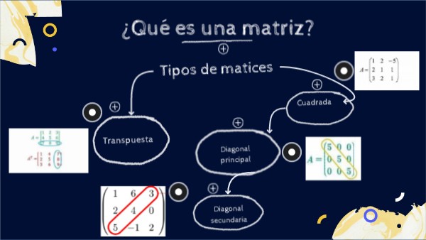 La diagonal principal de una matriz cuadrada son los elementos que van desde la esquina superior izquierda hasta la esquina inferior derecha.