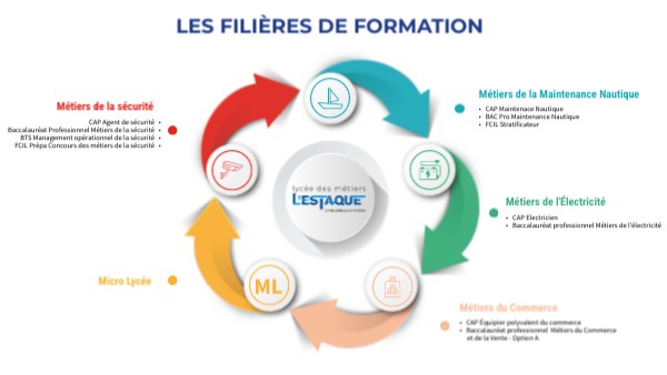 CAP Agent de sécurité •Baccalauréat Professionnel Métiers de la sécurité •BTS Management opérationnel de la sécurité •FCIL Prépa Concours des métiers de la sécurité •