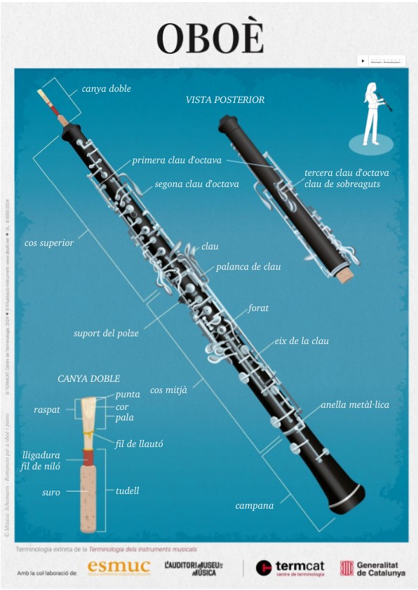 Instrument aeròfon de fusta, de registre agut, consistent en un tub estret que s'eixampla lleugerament a l'extrem inferior, proveït d'un tudell amb llengüeta doble.