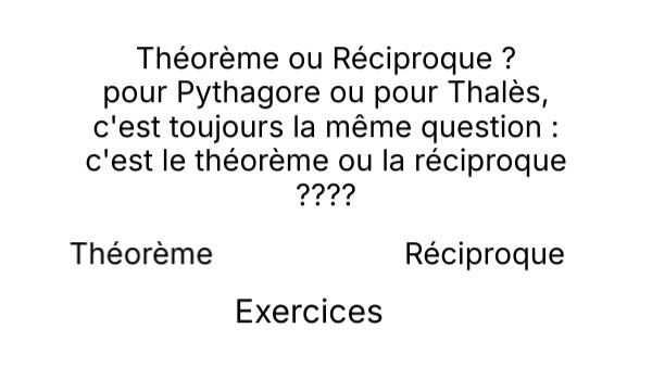 Théorème ou Réciproque ? pour Pythagore ou pour Thalès, c'est toujours la même question : c'est le théorème ou la réciproque ????