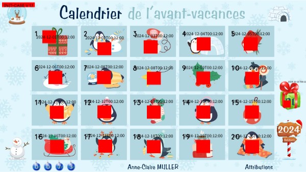Calendrier de l'avant-vacances 2024 avec ouverture programmée