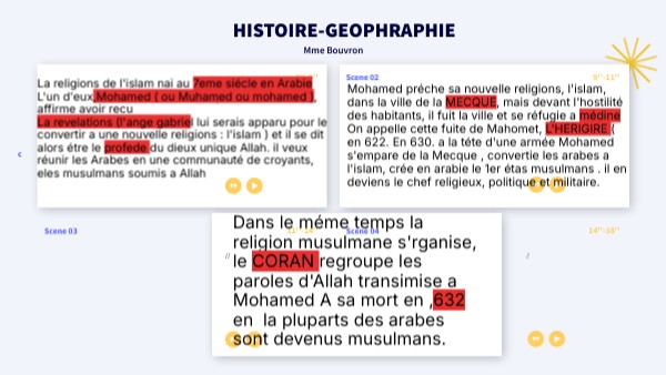 La religions de l'islam nai au 7eme siécle en Arabie L'un d'eux,Mohamed ( ou Muhamed ou mohamed ), affirme avoir recu La revelations (l'ange gabriel lui serais apparu pour le convertir a une nouvelle religions : l'islam ) et il se dit alors étre le profede du dieux unique Allah. il veux réunir les Arabes en une communauté de croyants, eles musulmans soumis a Allah