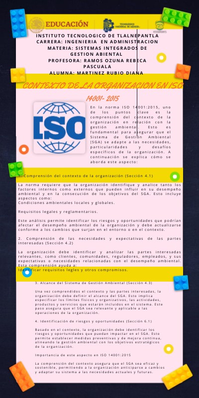 INSTITUTO TECNOLOGICO DE TLALNEPANTLACARRERA: INGENIERIA EN ADMINISTRACION MATERIA: SISTEMAS INTEGRADOS DE GESTION ABIENTAL PROFESORA: RAMOS OZUNA REBECA PASCUALA ALUMNA: MARTINEZ RUBIO DIANA