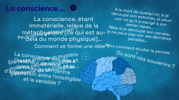La conscience, étant immatérielle, relève de la métaphysique (ce qui est au-delà du monde physique)...