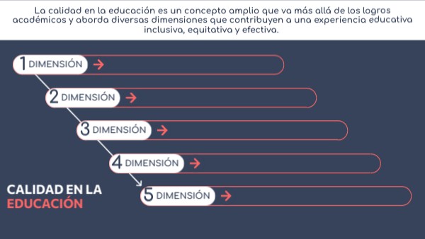 La calidad en la educación es un concepto amplio que va más allá de los logros académicos y aborda diversas dimensiones que contribuyen a una experiencia educativa inclusiva, equitativa y efectiva.