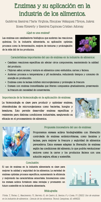 Infografía ENZIMAS Y SU APLICACIÓN EN LA INDUSTRIA DE LOS ALIMENTOS