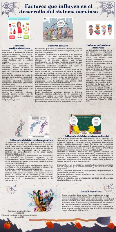 La deficiencia biológica con la que nacemos es compensada por la capacidad cognitiva, para aprender de la cultura que resulta será nuestro nicho ecológico más cercano. Al hablar de cultura se habla de todos los componentes como la ética y la religión El cerebro humano, el genoma están unidos por la cultura que se va desarrollando con le crecimiento del individuo. determinan el comportamiento, la personalidad y algunas conductas patológicas. Las interacciones sociales motivan conductas que puedes activar o inhibir la funcion de los genes(Villaseñor, 2021, p.27). La herencia cultural permite la expresión de fenotipos de un apersona en una población determiand los gasrgos y diferencia genéticas a partir de la influencia d ela comunidad en cada caso (Villaseñor, 2021, p.32)