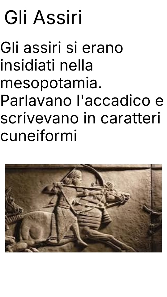 Gli assiri si erano insidiati nella mesopotamia. Parlavano l'accadico e scrivevano in caratteri cuneiformi